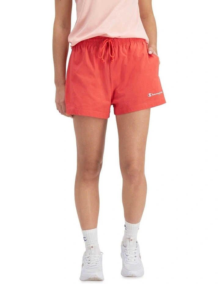 These Champion Jersey shorts will keep you cool all summer long. With a high-waisted, regular fit, they feature a comfy, self elasticated waistband with external draw cord, and are finished with a printed Champion script logo on the left leg.