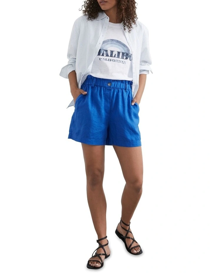 Our French Linen Relaxed Short offers effortless summer style. With a relaxed fit, these comfortable casual shorts are made from 100% French Linen and feature a frill detail at the waist, dark tort buttons and front slant pockets. Pair with our Aerin Leather Slide and French Linen Boyfriend Shirt. Our model wears a size AU 8/XS. She usually wears a standard AU 8/Extra Small, is 180cm tall, and has a 86cm bust, 95cm hips and 69cm waist.