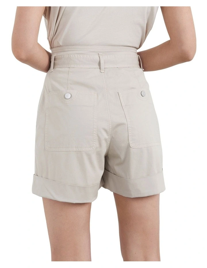 Elevate any outfit with our Utility High Waist Short. Featuring a high waisted design with paper bag detailing, patch pockets, a matching belt, FC branded studs and seam detailing throughout. Pair with our Essential Linen Tank and Meadow Leather Wrap Sandal. Model wears a size AU 8/XS. She usually wears a standard AU 8/XS typed, is 180cm tall, and has a 86cm bust, 95cm hips and 69cm waist.