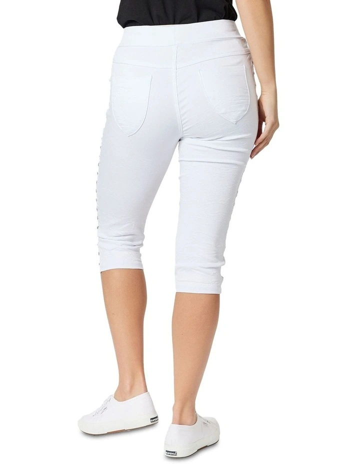 With a fun diamonte trim detail down the side seams, making these easy to dress up or down for any occasion. Pair back with the Hawaii print top or the X Heart tee. Style that fits the way you live.