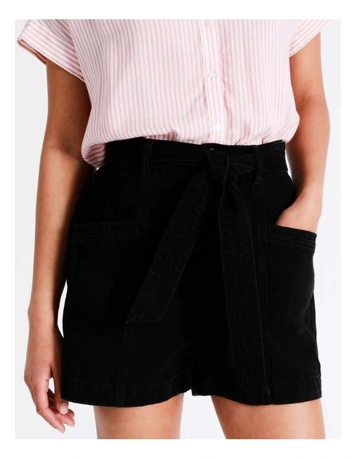 Grab DenimΒ Recycled Blend Belted Denim Short in Black