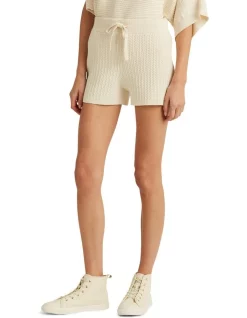 An elegant mini cable motif elevates these cozy cotton-blend shorts, which feature a comfortable elasticized drawstring waist.