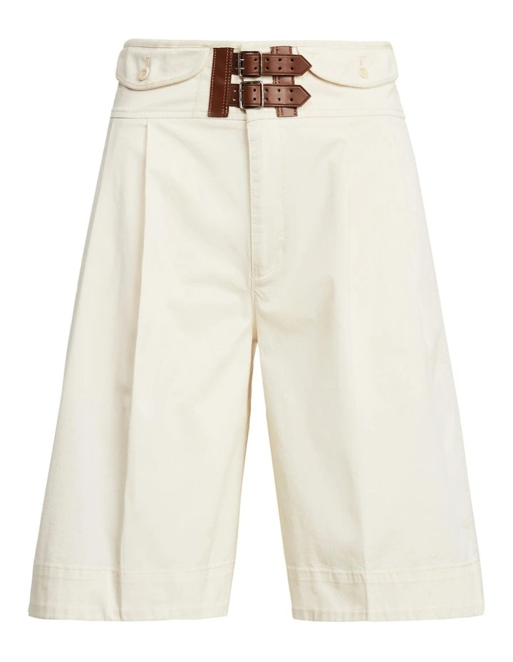 Streamlined and chic, these wide-leg shorts are designed with crisp creases and pleat detailing for a tailored look. Smooth cotton sateen adds a soft and silky hand, while a high rise and two faux-leather buckles at the waist offer modern intrigue.