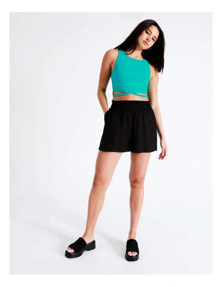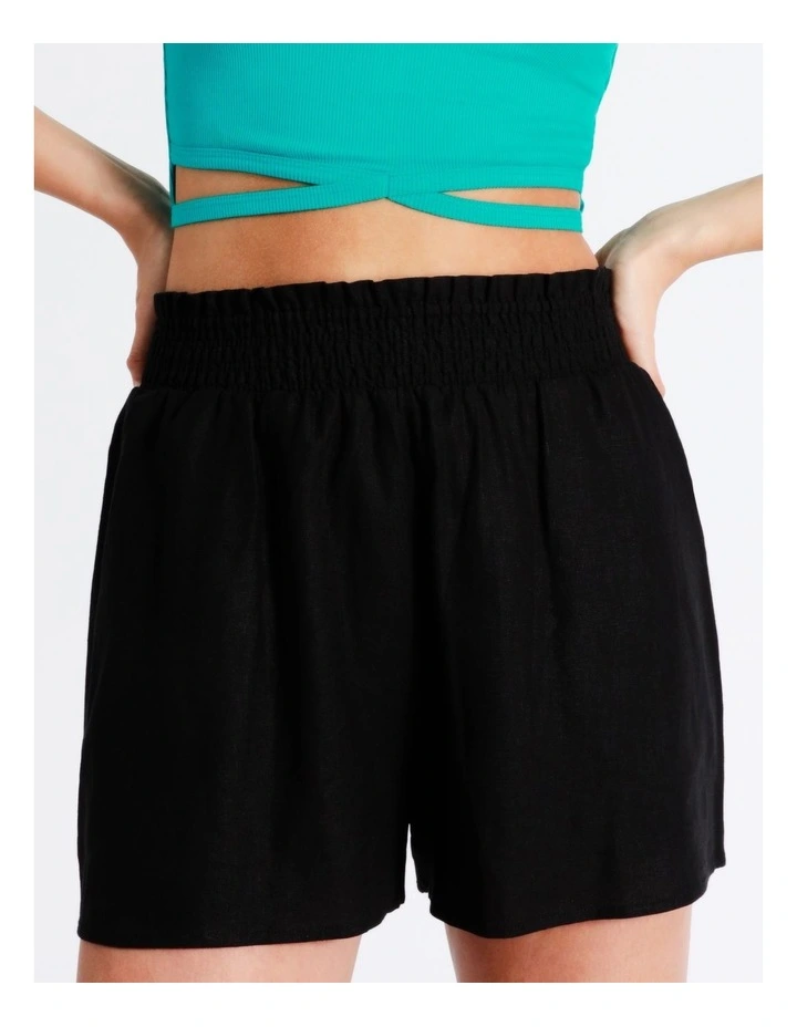 Miss ShopΒ Linen Paperbag Shorts in Black