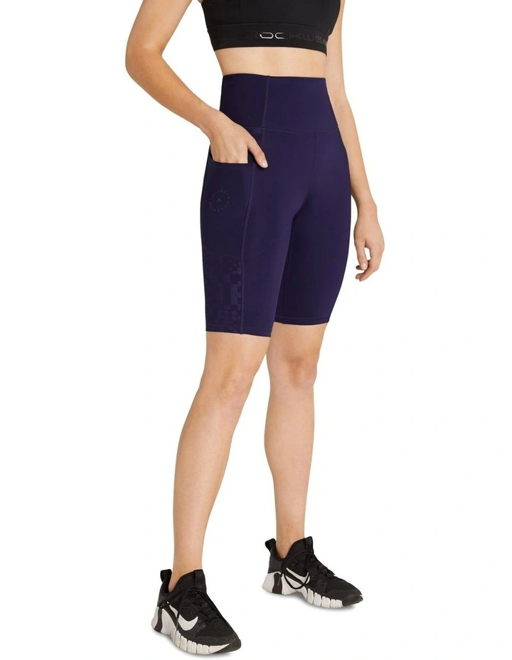 Built for performance the Textured High Rise Pocket Bike Shorts feature 4-way stretch and moisture wicking properties to keep you dry through even the toughest workouts. The subtle logo print and pocket detail give these bike shorts the edge whether you wear them at HIIT, bootcamp or the gym.