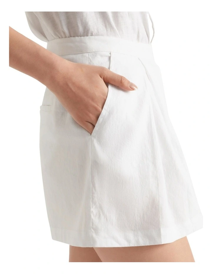 These shorts are a wardrobe staple with a classic look. Crafted from a lightweight stretch linen blend, they feature pleats at the front and hip pockets. Ideal for styling with bralettes and crops.