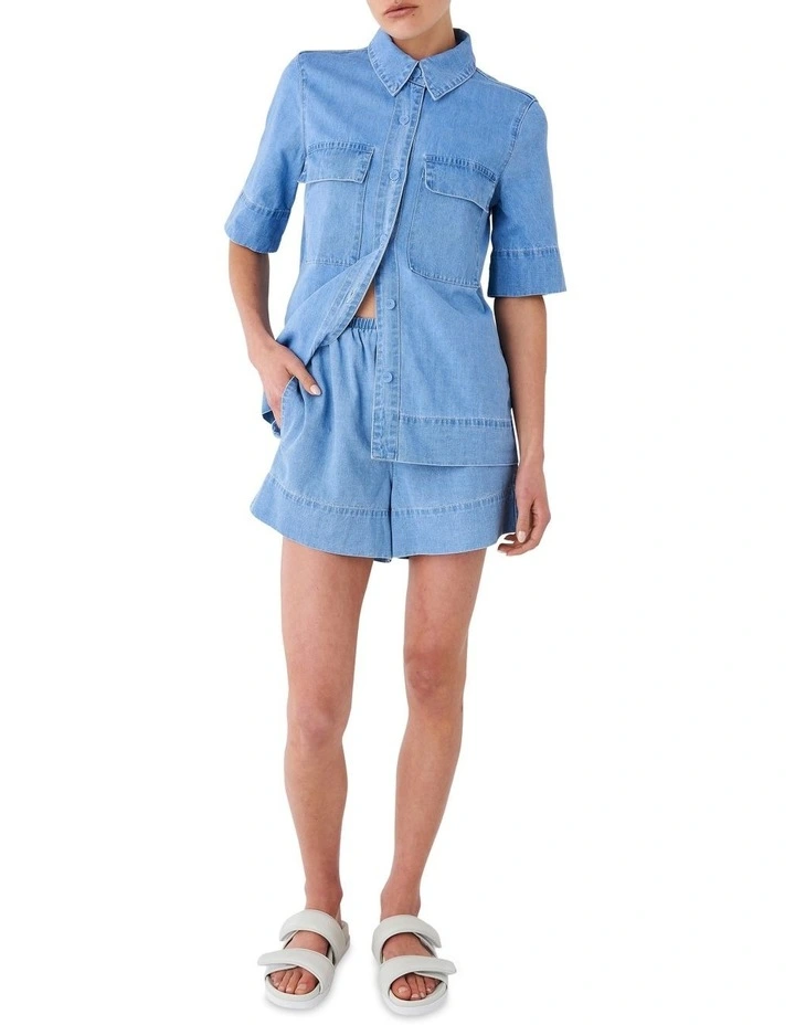 Our Cotton LinenΒ Denim shorts in an updated light wash denim for versatile wear during spring/summer.