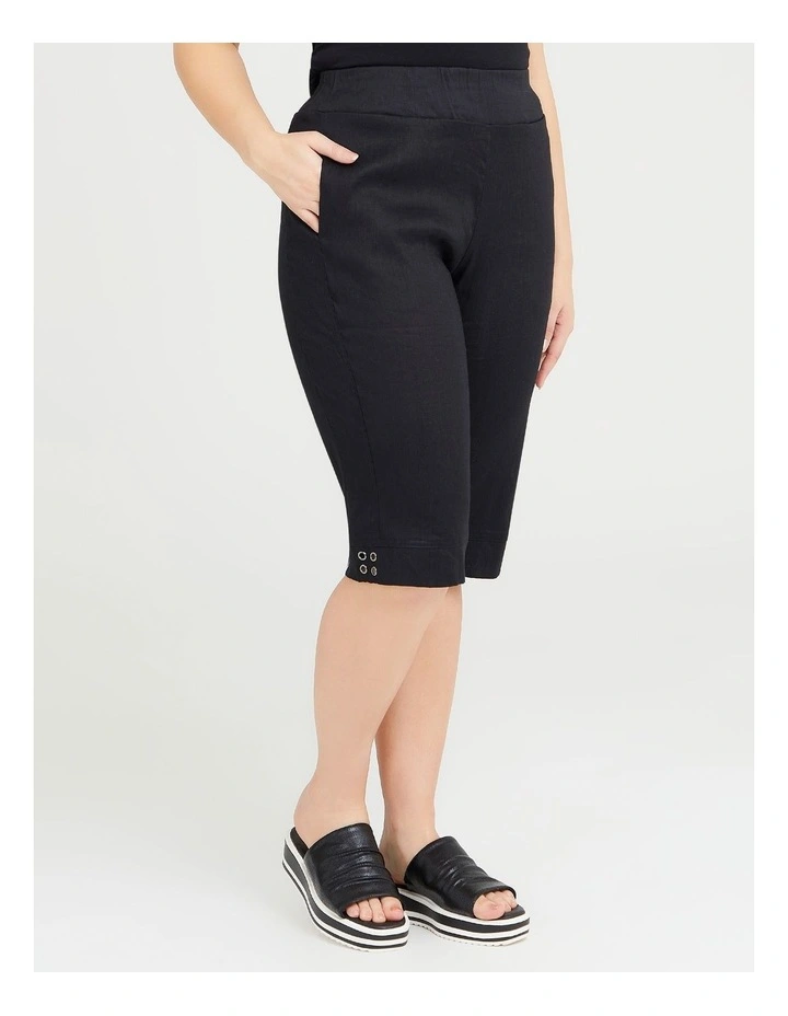 The Linen Stretch Taylia Shorts offer a timeless style and comfortable feel! Featuring a curve- flattering design with thoughtful details such as cuffed edging, tab detail at side leg, handy pockets and an easy-wear elastic waist. Sitting just over the knee, these plus-size shorts are a great length and have a flattering silhouette that would look great paired with a flowy blouse, tunic top or t-shirt. Crafted from a lightweight linen and viscose blend, this breathable fabric doesnt stick to the body, optimal for warm weather dressing and an effortlessly cool, summer style.